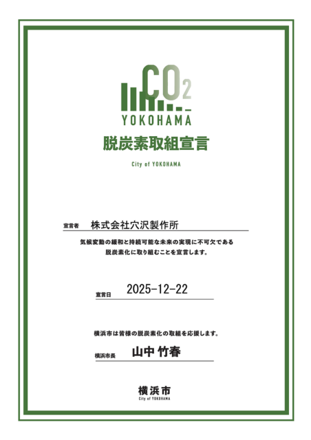 横浜市が推進する「脱炭素取組宣言」に賛同し、脱炭素化への取り組みを宣言いたしました。